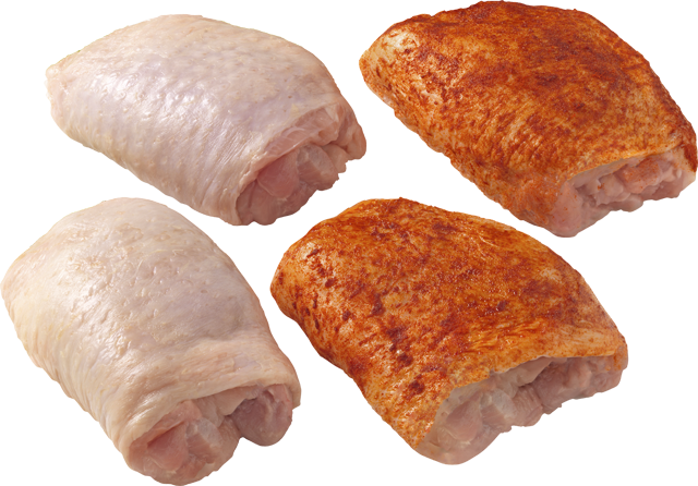 eine Hähnchenspezialität ohne Knochen, aus der Keule, auf Wunsch auch gewürzt, 100 g