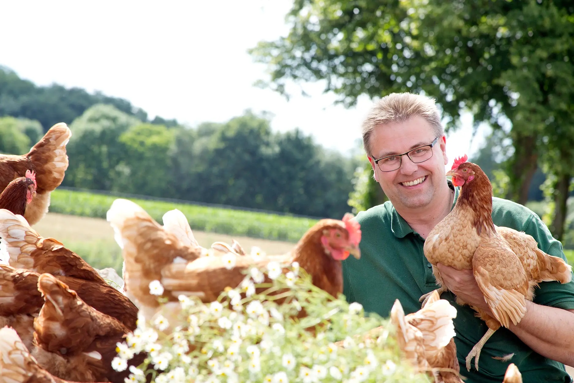 Die Honerkamps verstehen was von Hühnern und von Eiern. Seit Generationen sind sie der Hühnerhaltung eng verbunden: Honerkamp ist Plattdeutsch und bedeutet »Hühnerwiese«. Ihre Hofstelle trägt seit alters her die Bezeichnung »Alte Wiese«. Auf dieser Wiese, genau genommen sind es mehrere Wiesen, Ställe und Freiflächen, haben sich die Hennen schon immer wohlgefühlt. Hier haben sie Platz, Auslauf, viel Grün und jede Menge frische Luft. Dass es den Hennen dort gut geht, sieht man – und das schmeckt man auch.