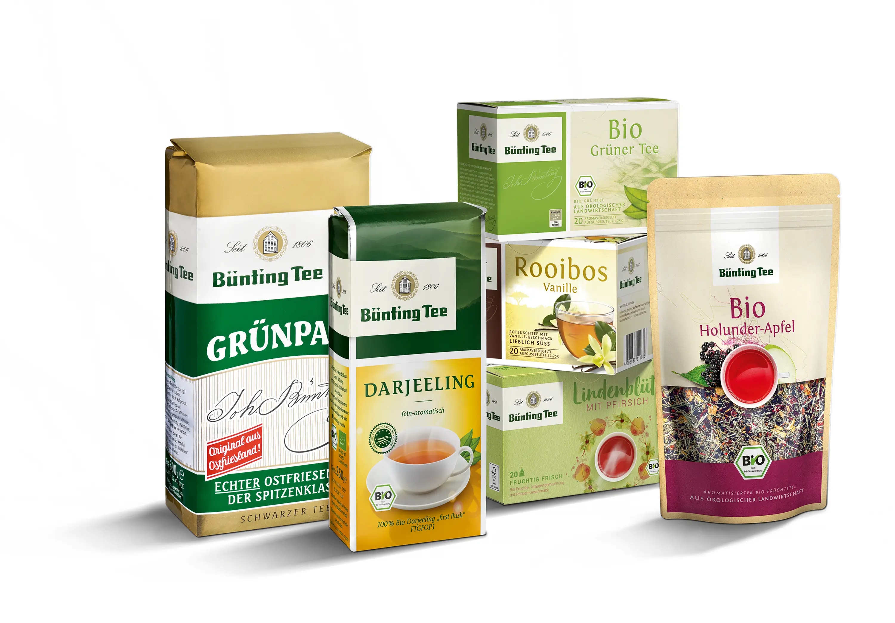 Als das älteste Privat-Teehandelshaus Ostfrieslands bringt Bünting mit über 200 Jahren Erfahrung und einem besonders hohen Qualitätsanspruch nur den allerbesten Tee in die Tassen seiner Liebhaber. Dafür steht bis heute der Name des Firmengründers Johann Bünting. Neben der ausgeprägten Schwarztee-Kompetenz hat sich Bünting Tee zu einem der wichtigsten Anbieter von zertifizierten Bio-Qualitäten im Kräuter- und Früchtetee-Bereich entwickelt und folgt damit dem allgemeinen Trend eines nachhaltigen und gesundheitsorientierten Lebensstils.