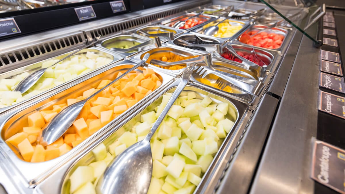 • Salatbar als Selbstbedienungsstation in der Obst- & Gemüseabteilung