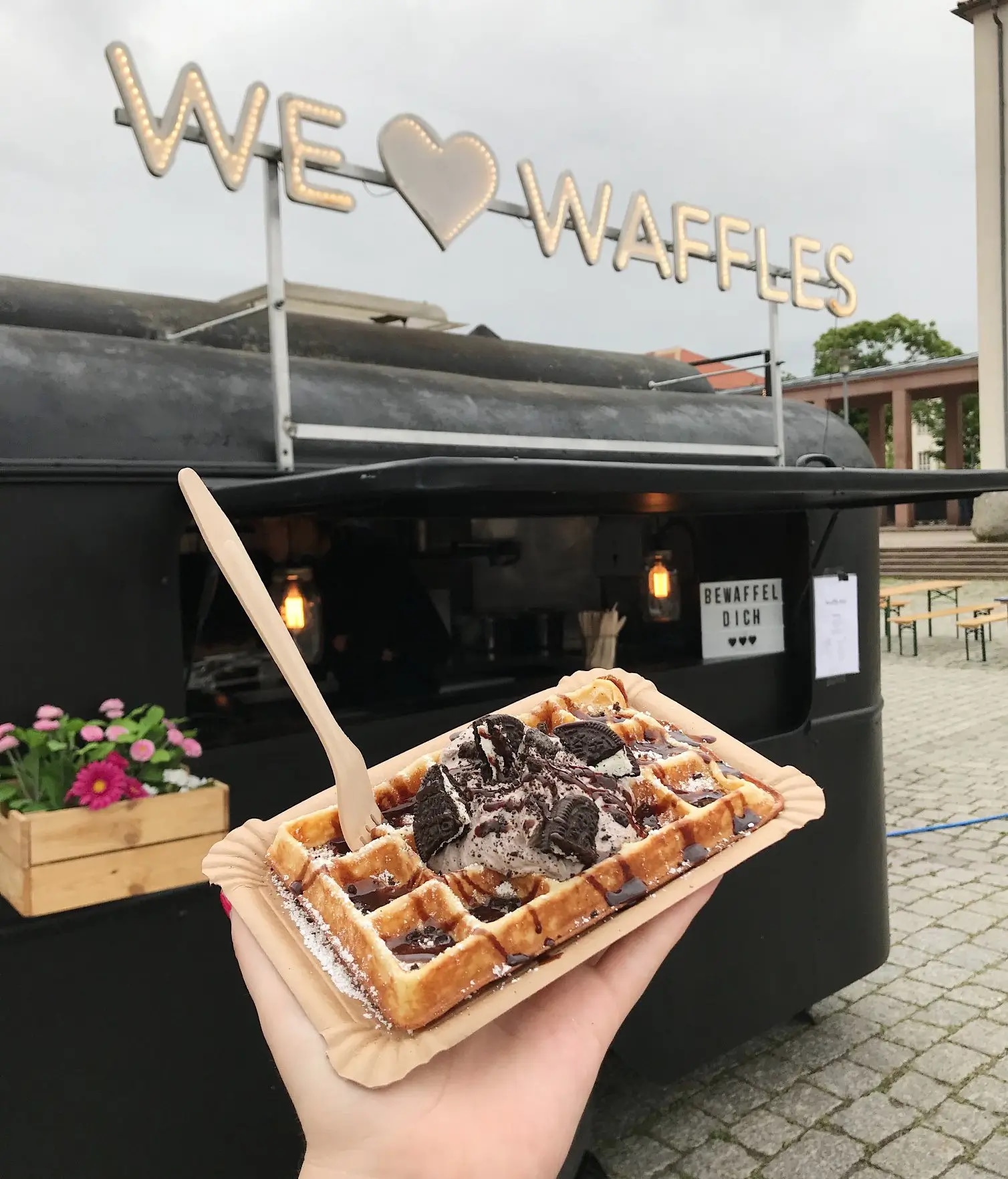Im Jahr 2011 erkannten zwei mutige Hallenser, dass Waffeln die Menschen dieser Stadt noch glücklicher machen würden. Seitdem können alle das leckerste karierte Lebensmittel im bewaffel dich in der Neumarktstraße verputzen. Damit brach in Halle ein echter Waffel-Wahn aus. Schnell wurde klar, dass eine Waffelbackmischung her musste, um den Waffelgenuss auch nach Hause zu holen. Die original bewaffel dich Backmischung war somit geboren. Stets dabei ist die wichtigste Zutat: ganz viel Liebe!