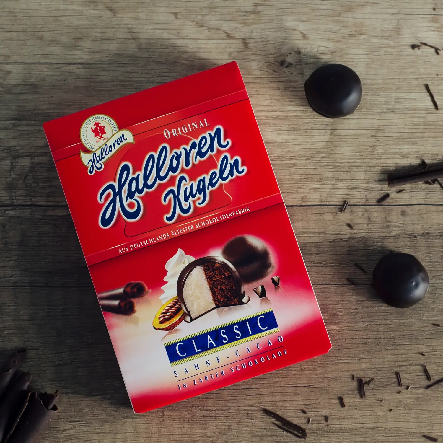 Mit der Herstellung und dem Verkauf von Kuchen, Torten und Schokolade im Jahr 1804 fing alles an. Doch die kleine, kugelige Pralinenkreation, die noch heute das Aushängeschild der Halloren Schokoladenfabrik ist, gibt es erst seit 1952. Die Original Halloren Kugeln haben die Form der Trachtenknöpfe am Festgewand der Halloren Salzwirkerbrüderschaft. Die halb mit Kakao- und halb mit Sahnemasse gefüllte Kugel ist mit Zartbitterschokolade umhüllt und ist ein echter Klassiker. Die Halloren Kugeln mit all ihren Geschmacksnuancen werden in Halle hergestellt.