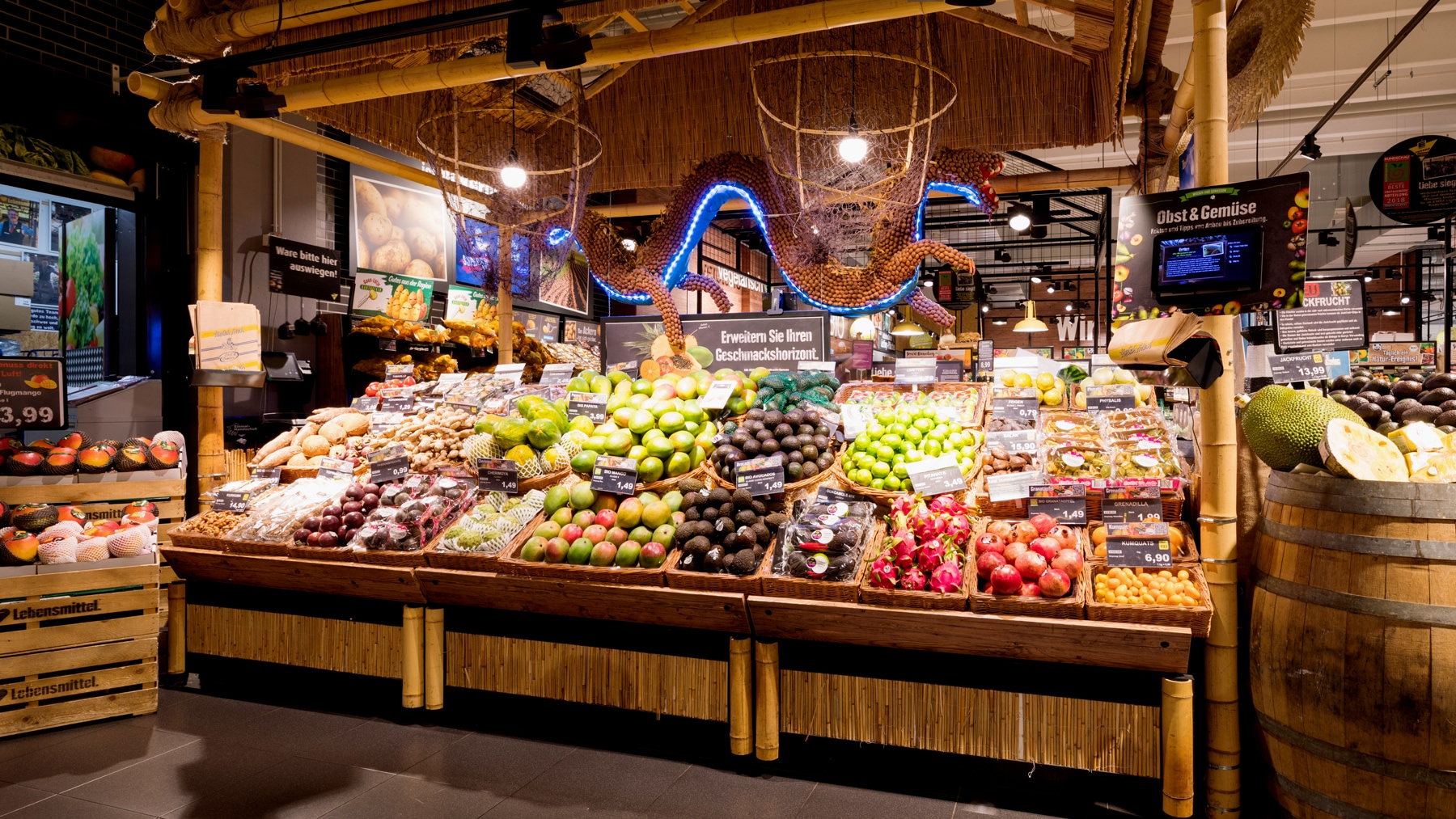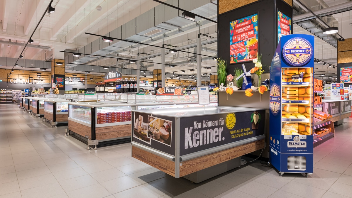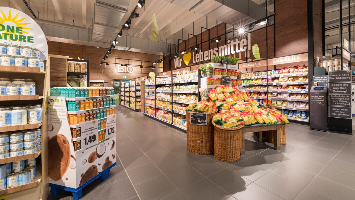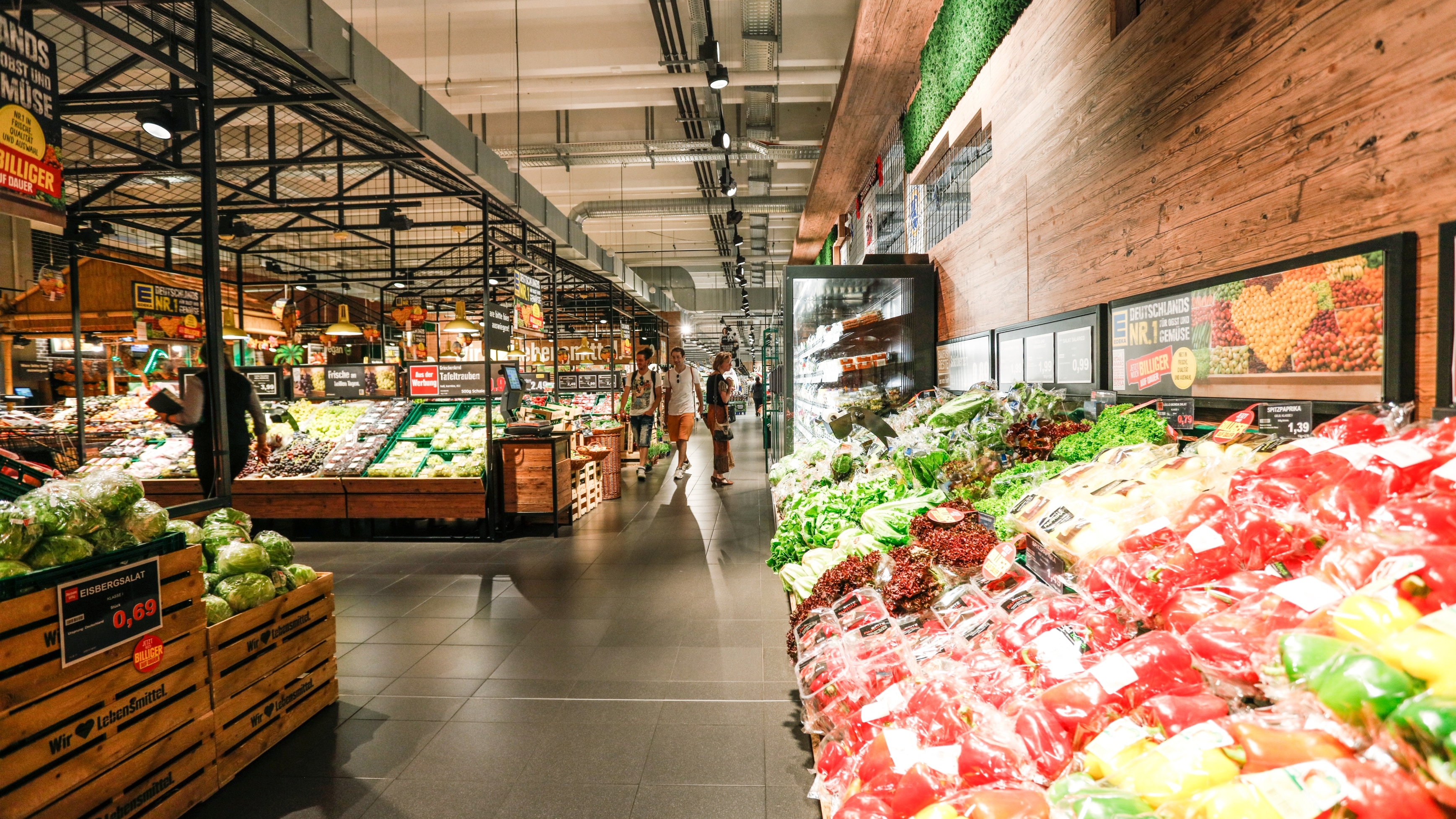 Die Aufbauten unserer großen Obst- & Gemüseabteilung muten wie traditionelle Marktstände an. Unsere Waren erreichen uns täglich frisch, sodass ihr euch auf knackiges Gemüse und saftiges Obst freuen können.
