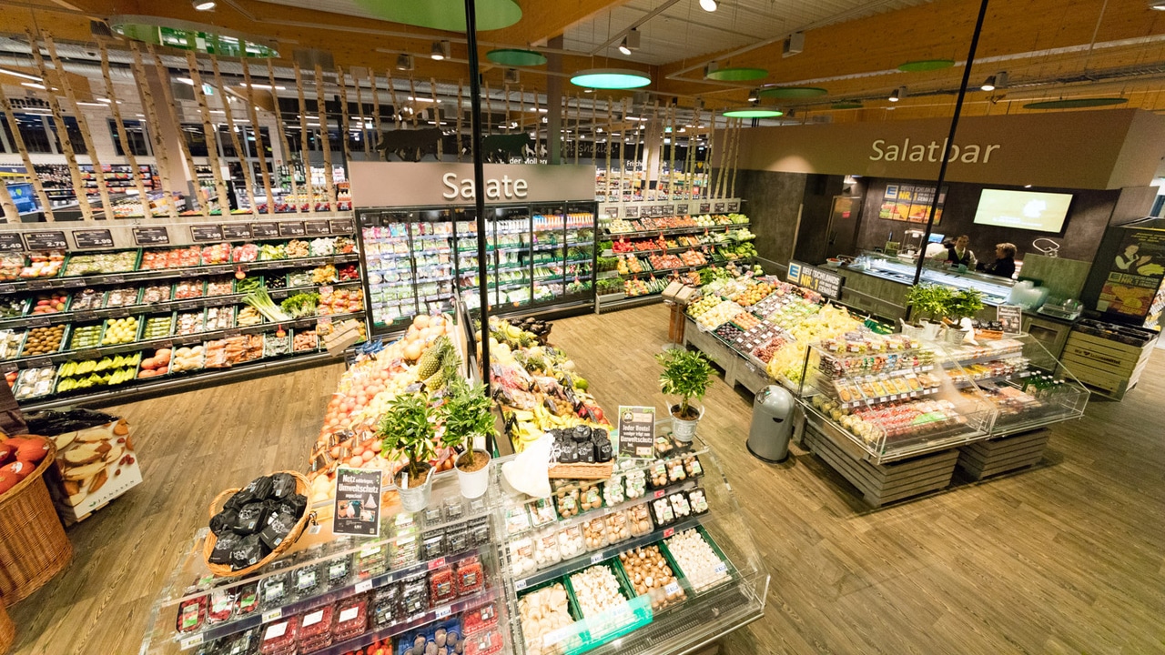 Bei Deutschlands Lebensmittelhändler Nummer eins steht die Auswahl im Frischebereich im Mittelpunkt. Dazu gehören die Bedientheken für Fleisch, Wurst und Käse sowie die großzügige Obst und Gemüse-Abteilung mit einer Salatbar. Im gesamten Sortiment gibt es auch regionale Produkte.