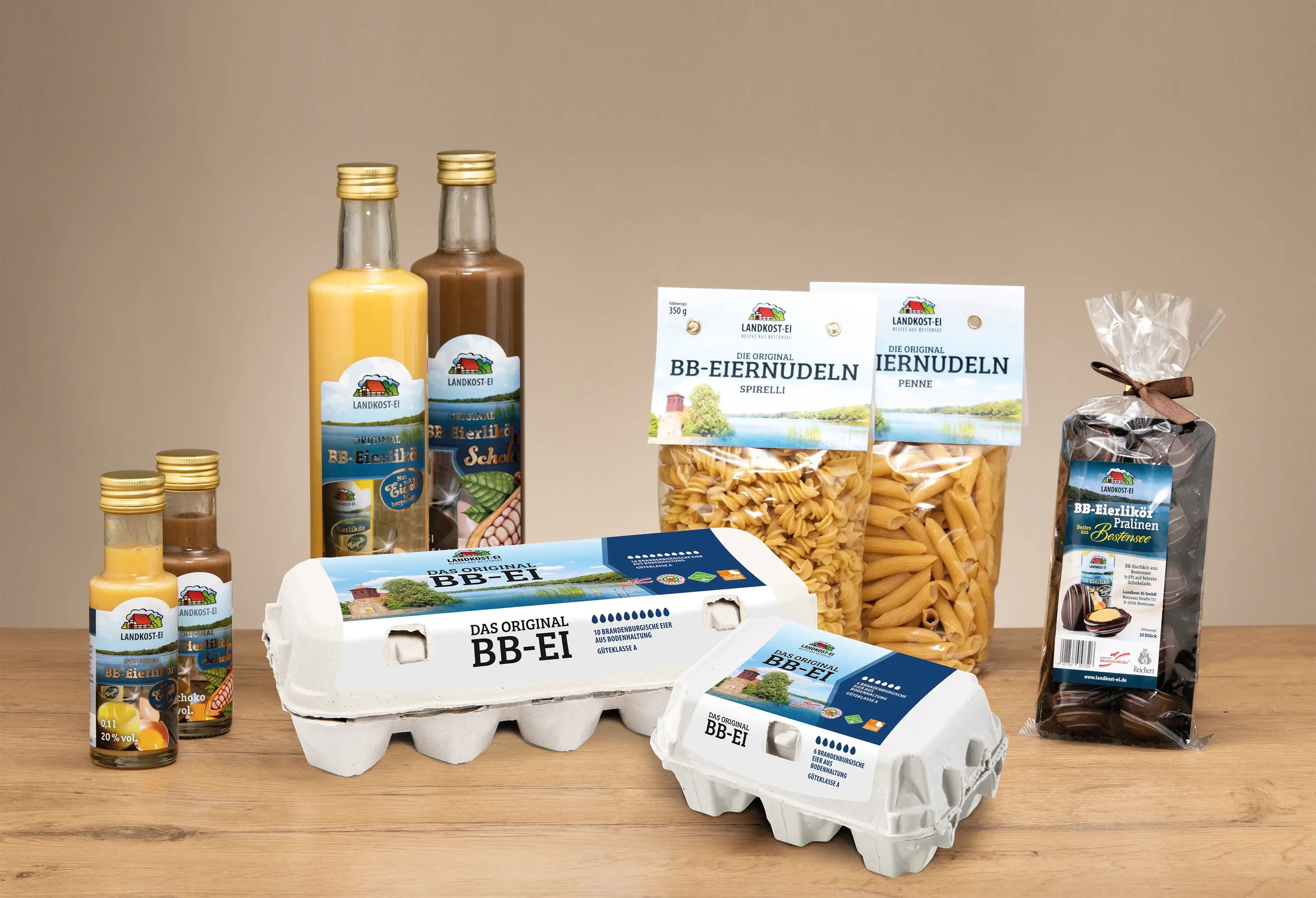 Landkost-Ei – hinter dieser Marke stehen zwei Unternehmen, die stark miteinander verbunden sind. So kümmert sich die Spreenhagener Vermehrungsbetrieb für Legehennen GmbH um die artgerechte Aufzucht und Haltung der Legehennen. Die Landkost-Ei GmbH ist für die Vermarktung von frischen Eiern aller Haltungsformen zuständig. So dreht sich hier alles um die Hennen und vor allem um die Eier. Mit der Zeit wurde das Sortiment - in Zusammenarbeit mit Betrieben aus der direkten Nachbarschaft -, um Eierlikör oder auch Eiernudeln erweitert.