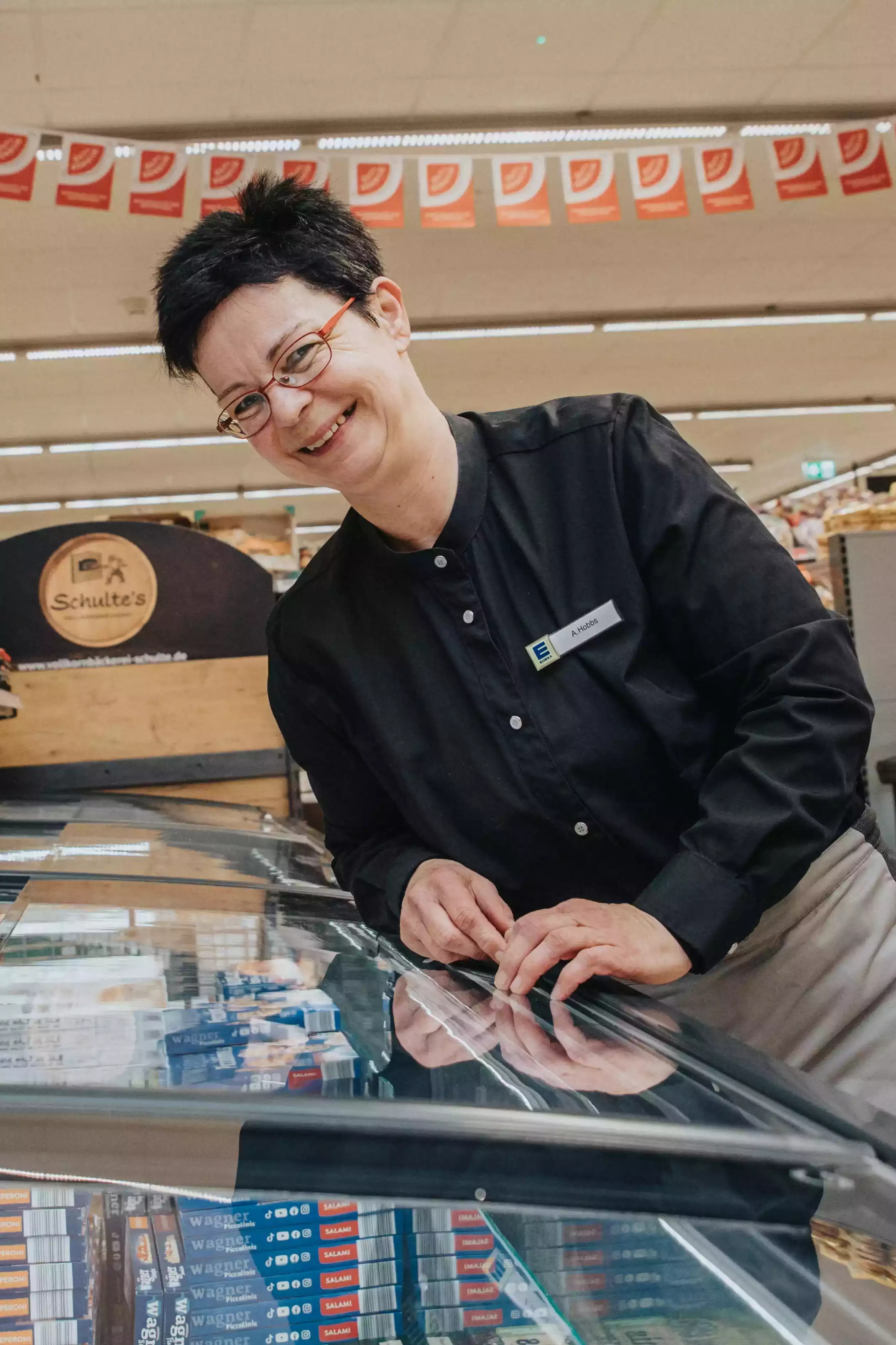 Anke Hobs Abteilungsleitung Tiefkühl. Eiskalte Leidernschaft: Anke Hobs kennt sich mit den süßen und herzhaften Gaumenfreunden im Tiefkühlbereich bestens aus. -