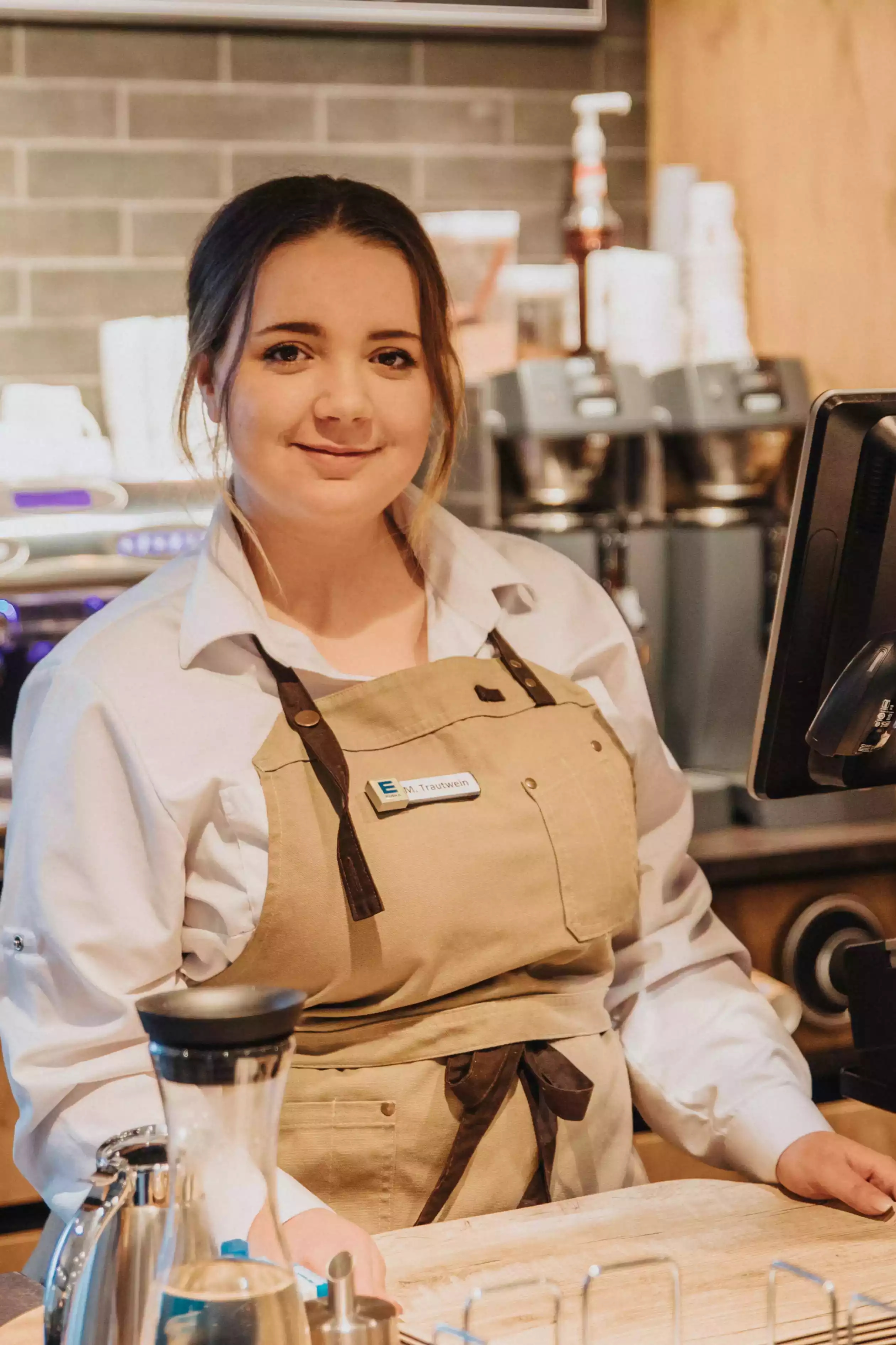 Abteilungsleiterin Lahofs Backstube Mercedes Trautwein. Ein köstlicher Duft kommt Ihnen schon am Eingang entgegen? Dann folgen Sie Ihrer Nase, denn Mercedes Trautwein hält viele Leckereien für Sie bereit wie, z.B. Brot, Brötchen, Kaffee oder Kuchen. -