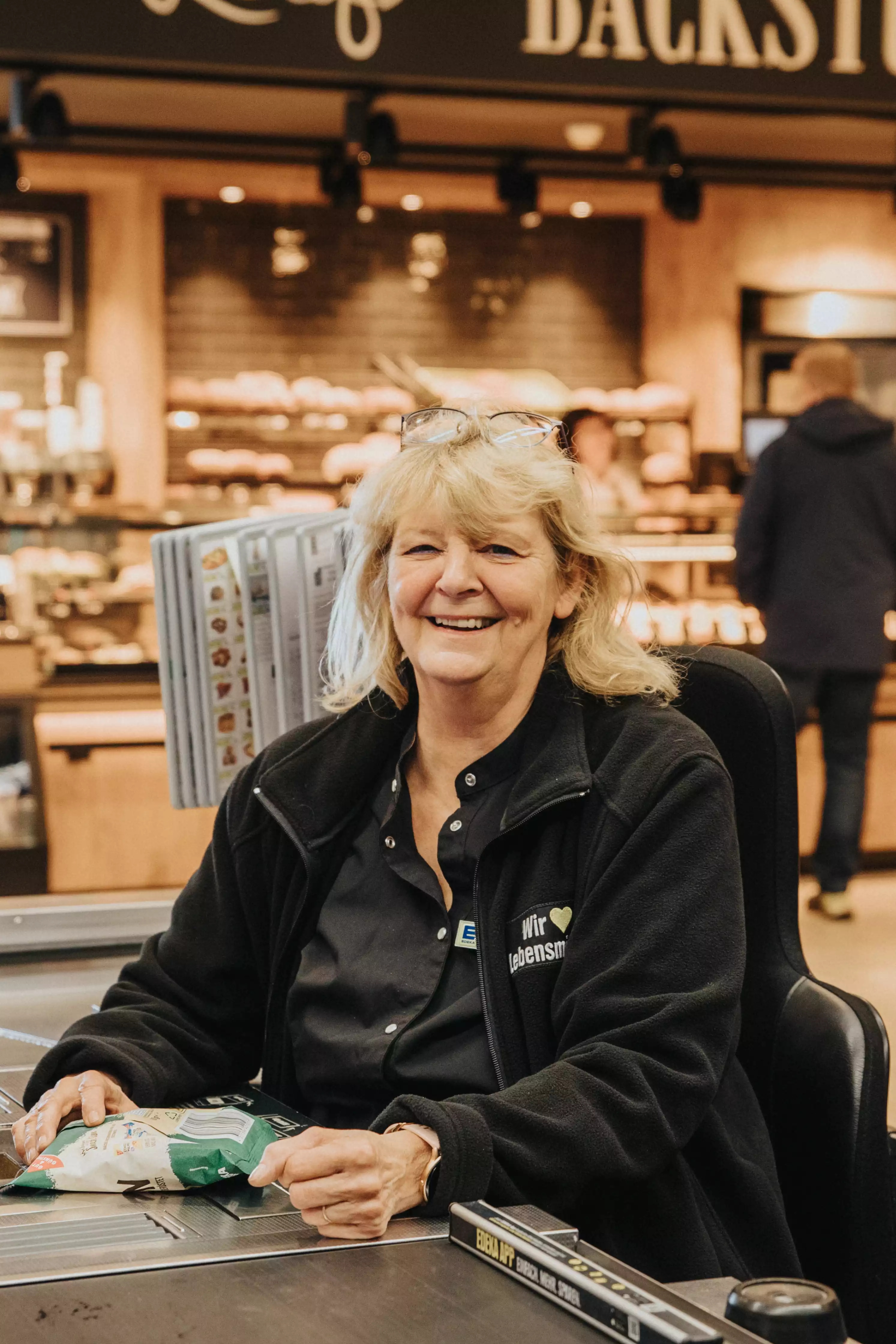 Markt-Mitarbeiterin Petra Meyer. Petra Meyer ist unsere gute Fee an der Kasse. Abkassieren geht hier ganz schnell. Sie freut sich auf Sie.
