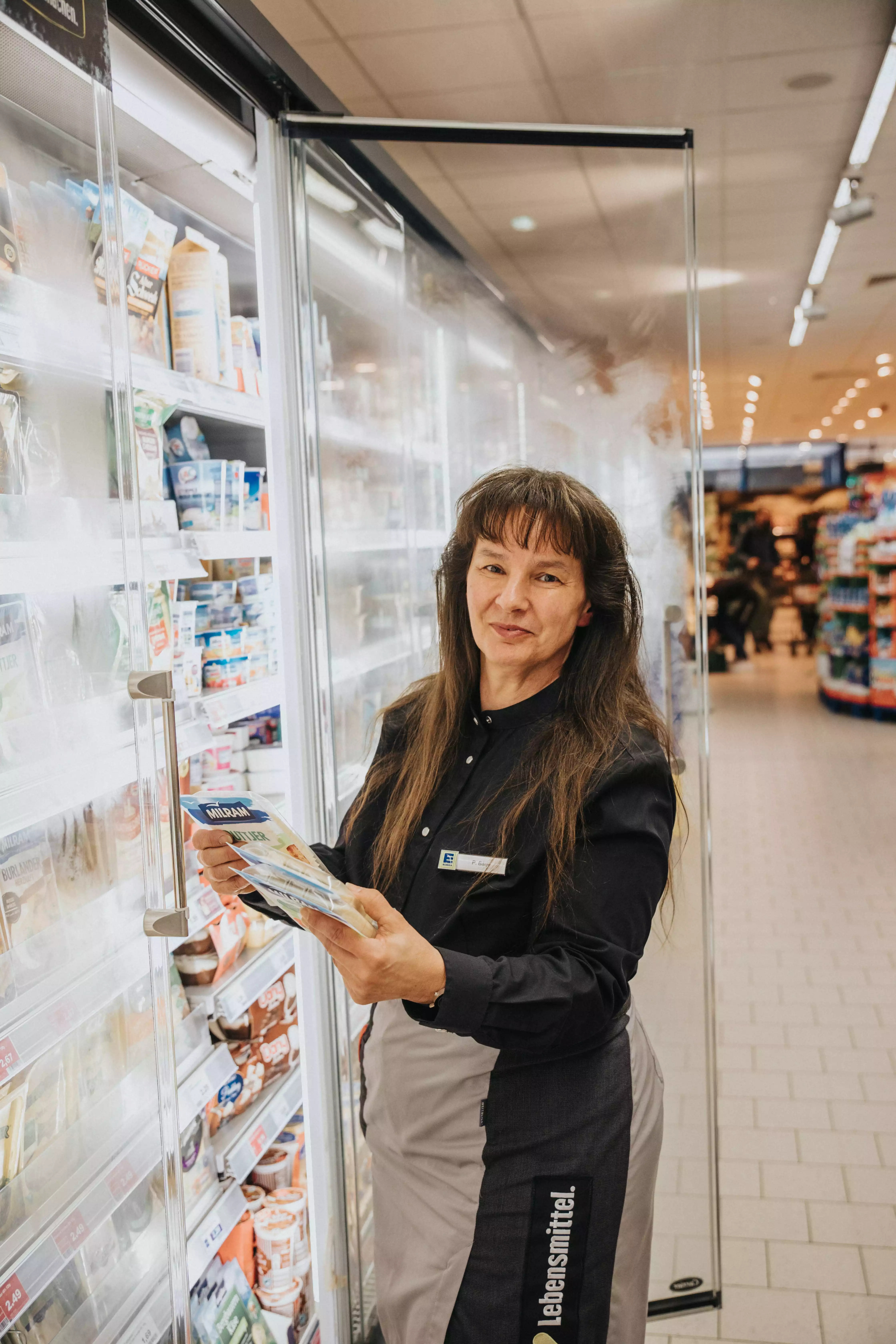 Petra Bärje ist Abteilungsleitung Molkereiprodukte. Ob Joghurt, Milch oder Butter: In unserem großen Sortiment von Molkereiprodukten behält Petra Bärje stets einen kühlen Kopf. -