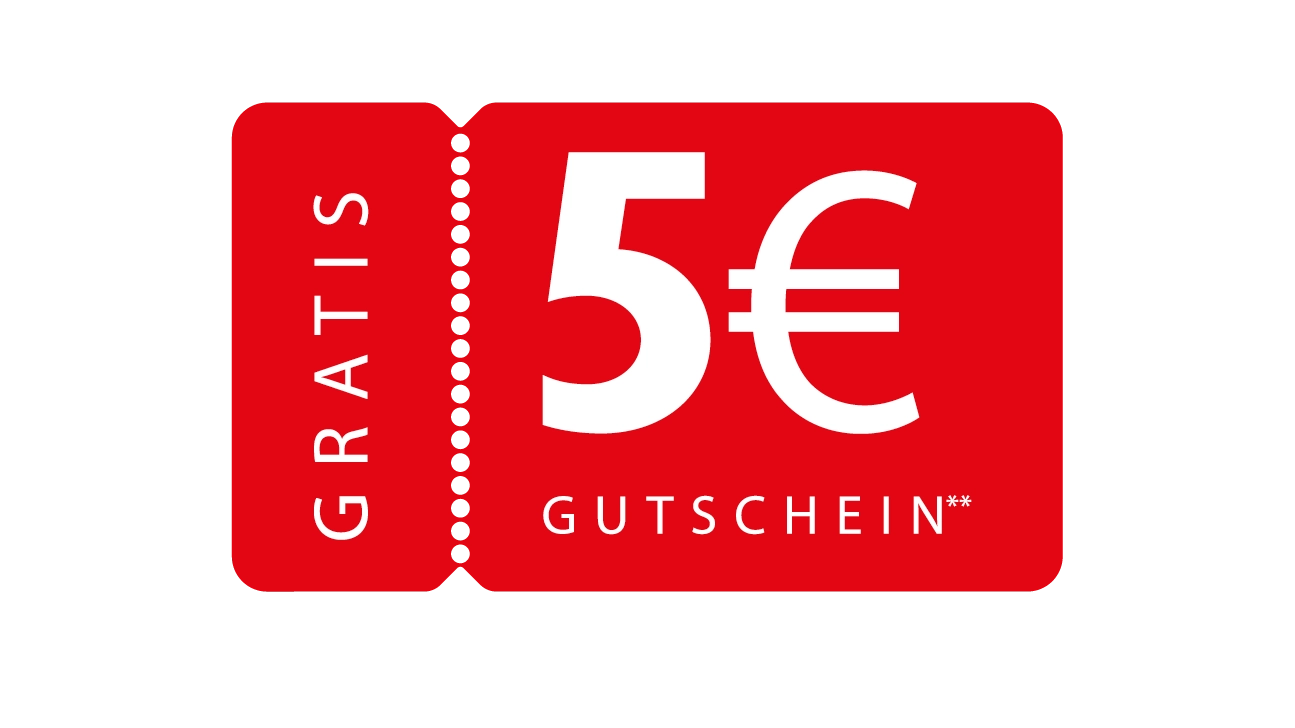 *Die 5 EURO werden zusätzlich als Gutschein über die Kasse ausgegeben. Gilt nicht für Leergut, Tabakwaren, Telefonkarten, Zeitschriften, Bücher, Müllbeutel der Stadtwerke. Warengutschein. Keine Barauszahlung möglich.