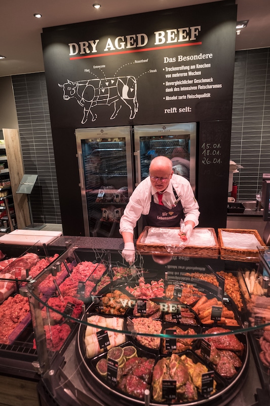 Übrigens: auch an unserer Wursttheke finden Sie regionale Produkte und eine große Auswahl an Artikeln aus eigener Herstellung. Die täglich frisch zubereiteten Spezialitäten von unseren gelernten Metzgern begeistern unsere Kunden schon lange und sind sehr beliebt. Unser Tipp: Probieren Sie doch einmal ein frisches Bio-Brötchen mit unserem hausgemachten Roastbeef!