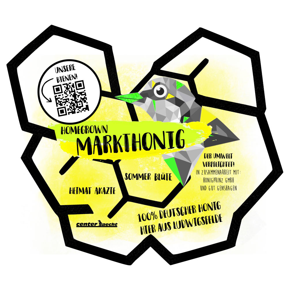 Als Idee dient dazu der eigene Markthonig, 100% deutscher Honig aus Ludwigsfelde, also eben 100% Regional.