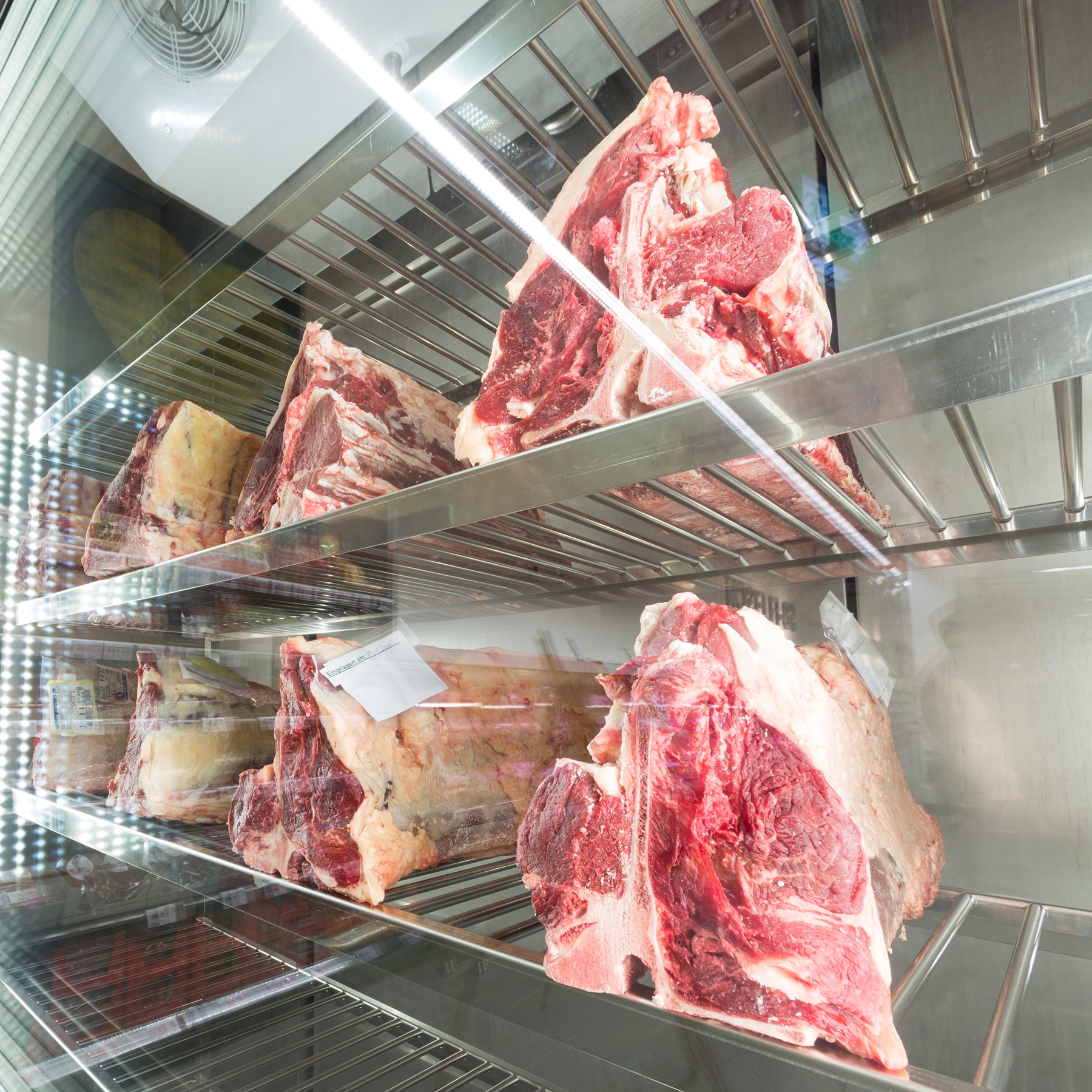 Nur deutsches Rindfleisch von ausgesuchter Qualität findet seinen Weg in unseren speziellen Reifeschrank mit digital gesteuertem Innenklima. Nach einer Reifezeit von ca. 4 Wochen verliert das Fleisch 30% seines Gewichts. Übrig bleibt ein sehr zartes, saftiges Stück mit intensivem Eigengeschmack. Unsere Stücke lagern 4 Wochen, bevor sie in den Verkauf kommen. Wir bieten dir die Möglichkeit dein Stück individuell reifen zu lassen. Sprich uns an!