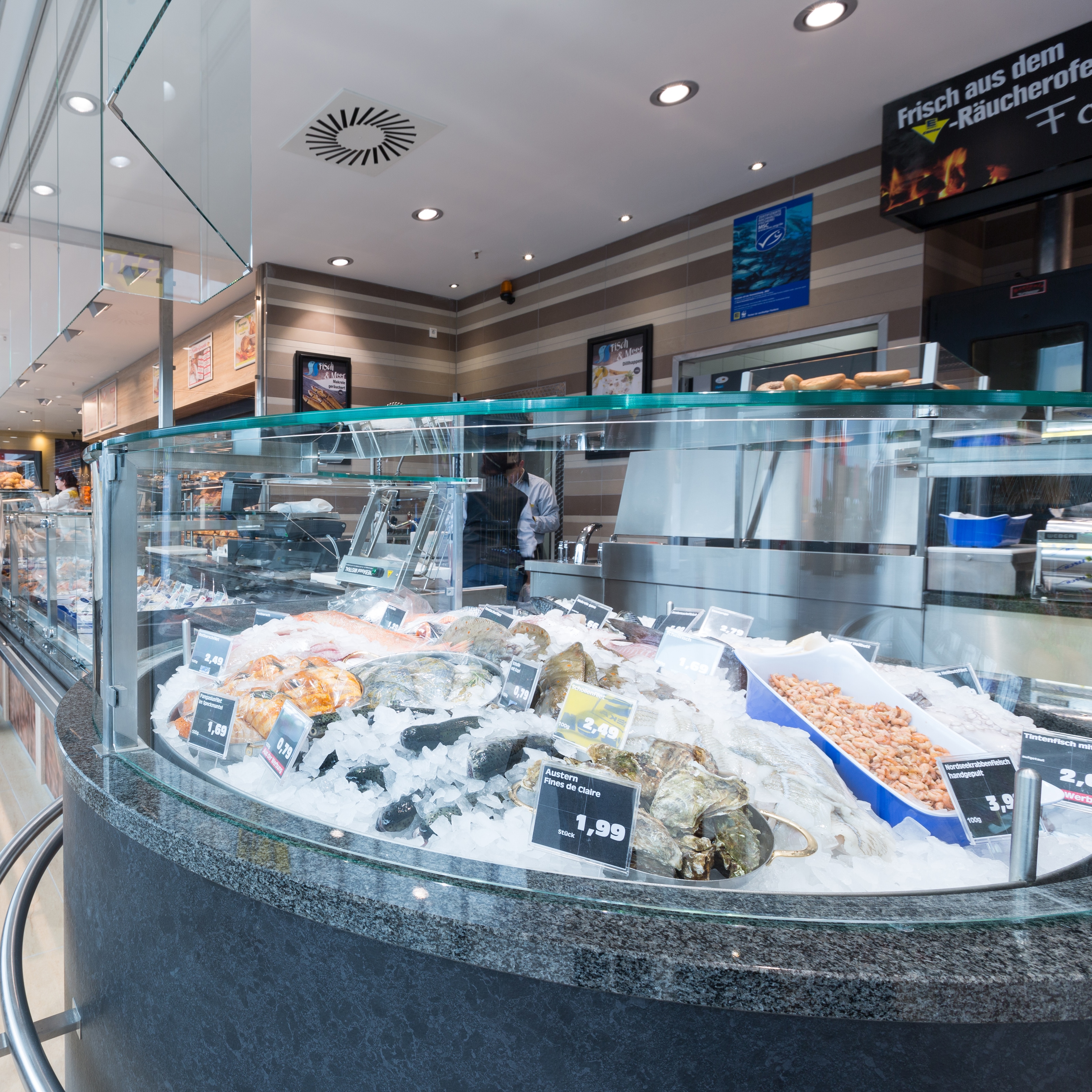 Unsere Fischfachabteilung bietet Ihnen rustikale und raffinierte Räucherfischspezialitäten, herzhaft und exotische Feinkostsalate, zart-milde und deftige Marinaden und eine reichhaltige Auswahl an Fischgerichten.