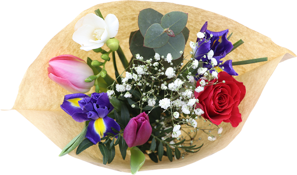 mit Rosen, Tulpen und Freesien, versch. Farben, 9 Stiele, ca 35cm lang, Strauß