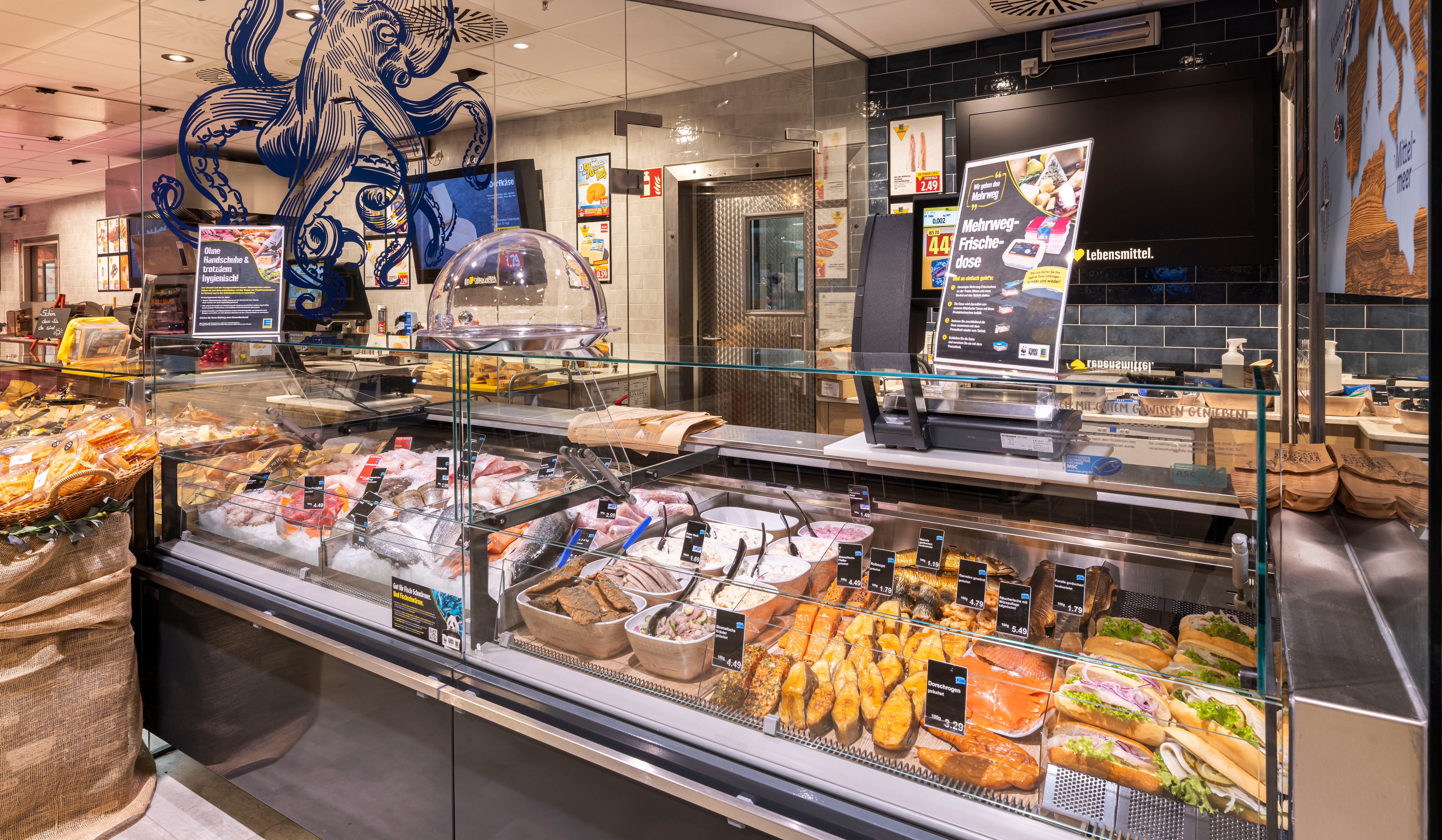 Unsere Bedientheke bietet euch jede Woche von Donnerstag bis Samstag Frischfisch aus allen Weltmeeren.