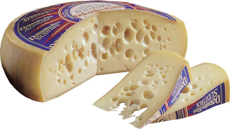 italienischer Schnittkäse aus Südtirol, 45 % Fett i. Tr., 2 Monate gereift, kirschgroße Lochung, intensives Aroma, auch als SB Stück erhältlich, 100 g