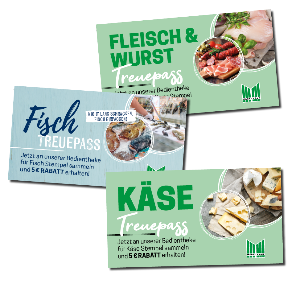 Ab 5€ Einkauf an unserer Bedientheke für Fisch, Fleisch, Wurst oder Käse erhältst du einen Treuestempel. Bei 10 gesammelten Stempeln belohnen wir dich mit einem 5€ Einkaufsgutschein.