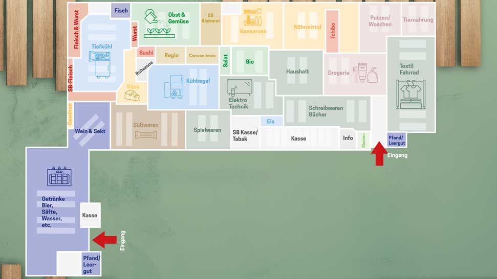 Damit du dich bei uns schnell Zuhause fühlst, schau gerne unseren Marktplan an, wo du was findest.
