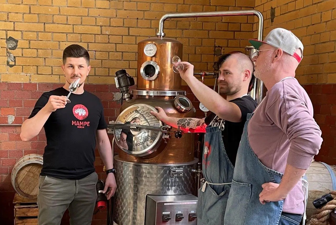 1831 erfand Carl Mampe den Bitteren Tropfen als Arzneimittel gegen Cholera. Daraus entstand 1852 der Mampe Halb & Halb – Halb Bitter Halb Orange. Einst als Arzneimittel erfunden, gab es in der Geschichte von Mampe keine Spirituose, die es unter diesem Namen nicht gab. Keine Gelegenheit, zu der Mampe nicht das passende Getränk hatte. Fast gänzlich verschwunden, ist Mampe heute wieder zurück in Berlin. Mitten im Kreuzberger Bergmannkiez hat Berlins älteste Spirituosen-Marke eine neue Heimat gefunden.