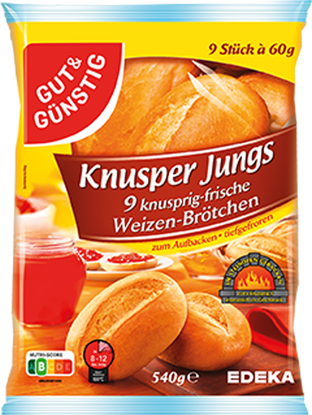 9 knusprig-frische Weizenbrötchen, 540g Beutel, (1kg=2,39)