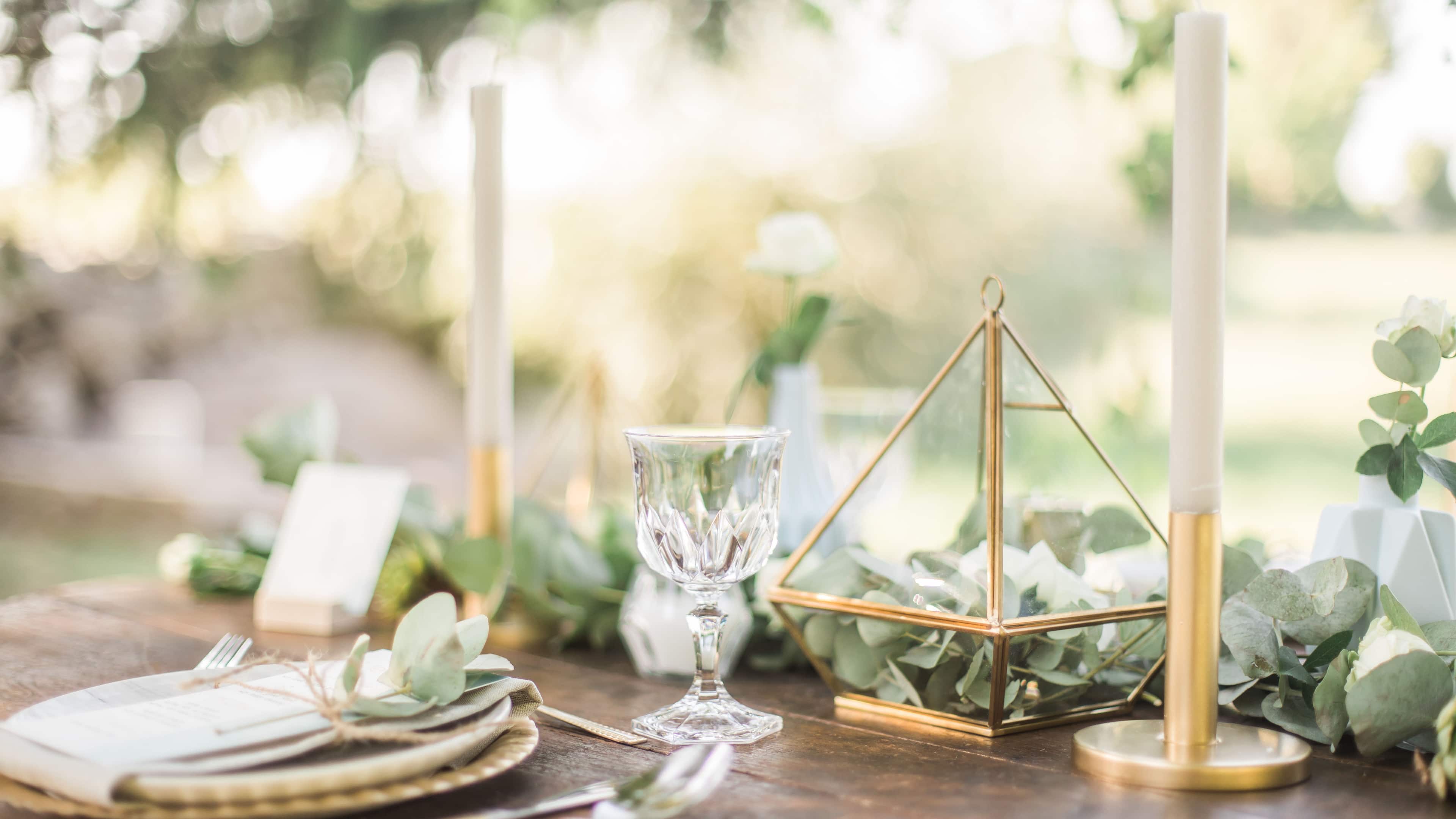 Gedeckter Tisch mit weißen Kerzen
