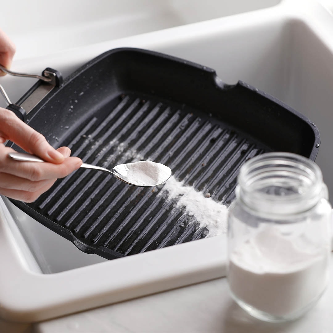 Soda ist ein altbewährtes Hausmittel gegen Fettschmutz: Es wirkt stark alkalisch und löst daher Fette und Eiweiße. Damit eignet es sich bestens in der Küche, zum Beispiel um eingebrannte Essensreste aus Pfannen und Töpfen zu entfernen. Mit Soda reinigst du auch die fettigen Unter- und Oberseiten von Küchenschränken zu reinigen (beim Spülmittel-Selbermachen verwendest du dagegen besser Natron, das eine ähnliche Wirkung hat, aber weniger "scharf" ist). Verdünne für eine verkrustete Pfanne 2 EL Soda mit 500 ml Wasser und lasse die Mischung ca. eine halbe Stunde in der Pfanne einwirken (leichtes Erhitzen auf dem Herd unterstützt den Prozess). Danach löst sich der Dreck spielend. Um Oberflächen von Fett zu befreien, geben Sie 1 EL Soda in 500 ml Wasser und schütteln alles kräftig. Achtung: Handschuhe tragen beim Hantieren mit Waschsoda!