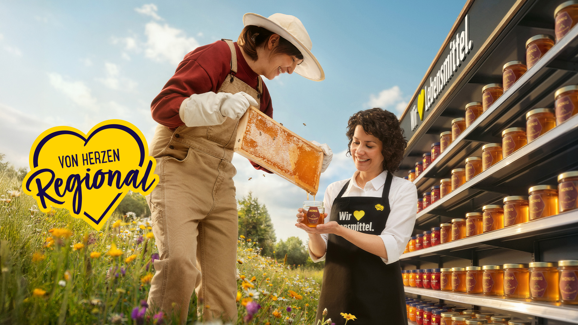 Deshalb arbeiten wir in all unseren Regionen eng mit Landwirt:innen und regionalen Betrieben zusammen. Die neue Regionalkennzeichnung „Von Herzen Regional“ dient dir dabei als praktische Orientierungshilfe, denn mit dieser findest du regionale Produkte noch schneller. Die Kennzeichnung führt dich im Markt zuverlässig zu allem, was aus deiner Region stammt, und macht unser vielfältiges Angebot für dich klar erkennbar. So kannst du bewusst regionale Erzeugnisse unterstützen und die Qualität aus deiner Umgebung genießen.