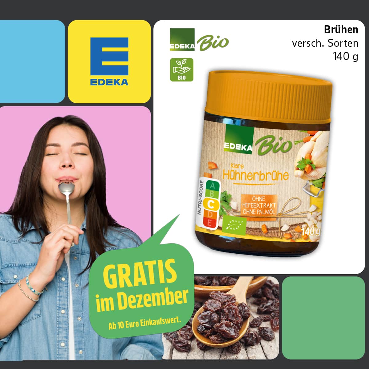 Diese Artikel sind in den mit dieser Werbung gekennzeichneten Märkten erhältlich. Für Irrtum und Darstellungsfehler übernehmen wir keine Haftung. Abgabe nur in haushaltsüblichen Mengen. Alle Preise in Euro, sie verstehen sich als Abholpreise und alle Artikel sind ohne Dekoration erhältlich. Erhältlich nur in den mit diesen Angeboten gekennzeichneten Geschäften. Alle weiteren Informationen der Firma und Anschrift Ihres teilnehmenden EDEKA-Marktes finden Sie unter