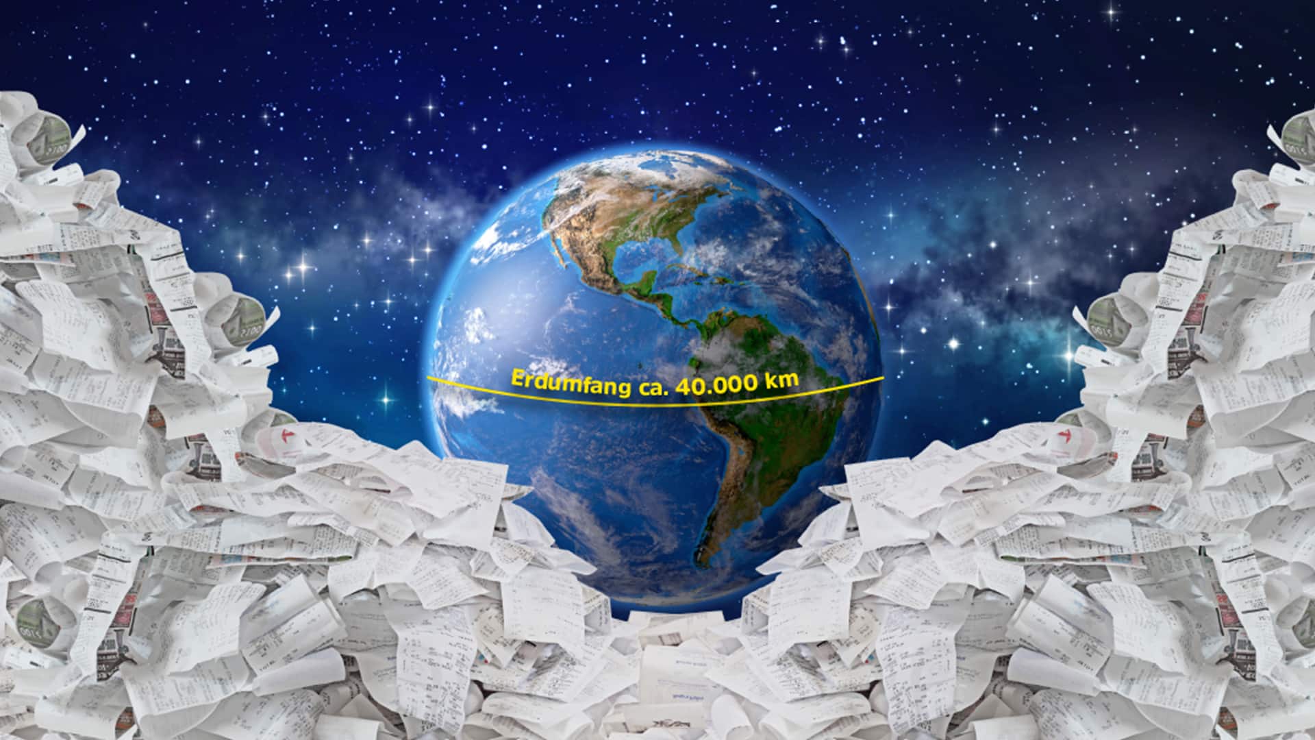 … der deutsche Einzelhandel pro Monat ca. 580.000 km Kassenbons produziert. Das entspricht einer 14,5 fachen Erdumrundung pro Monat!