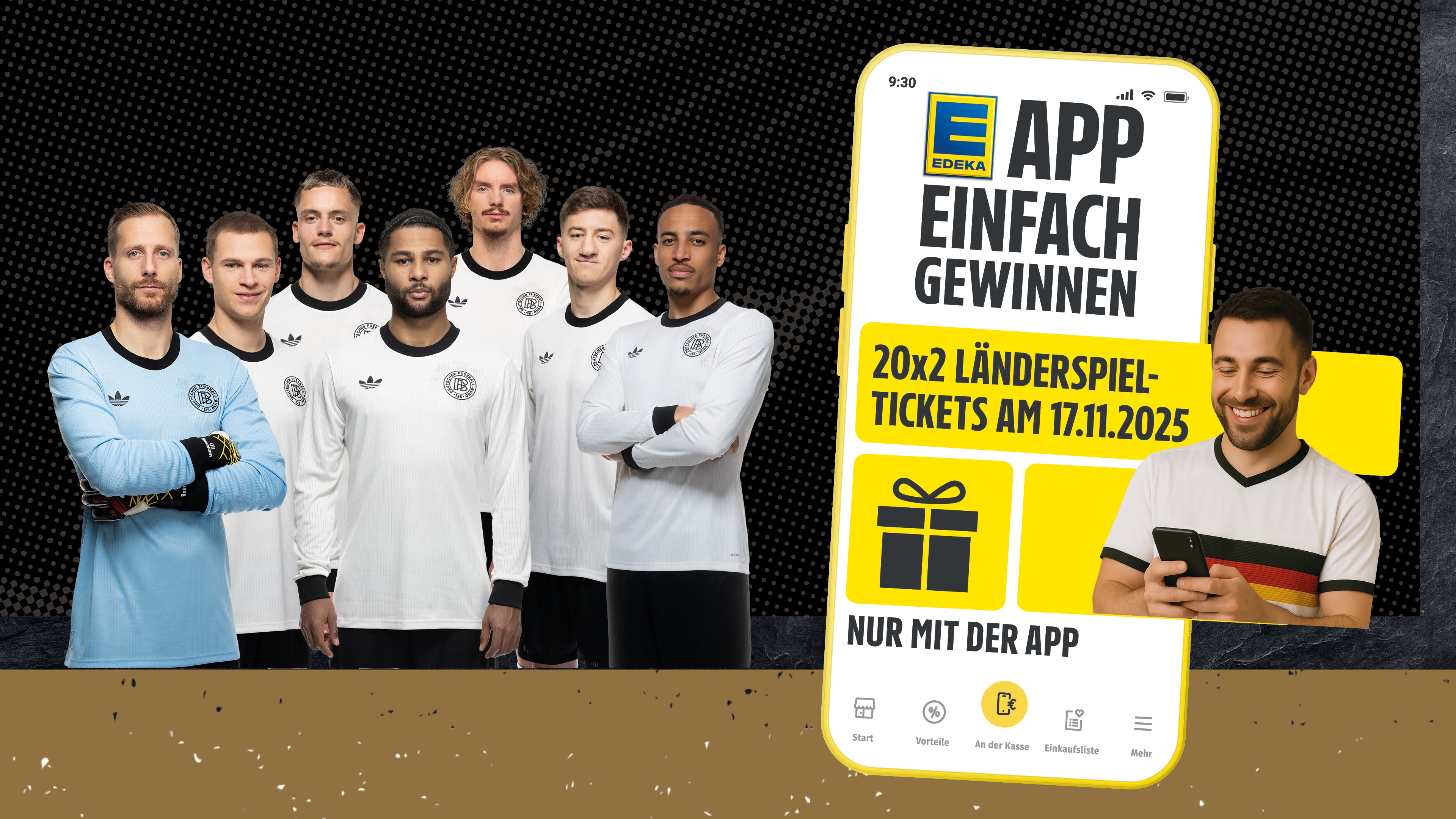Du möchtest live im Stadion beim Länderspiel am 17.11.25 dabei sein? - Dann kannst du dir jetzt mit der EDEKA App 2 Tick...