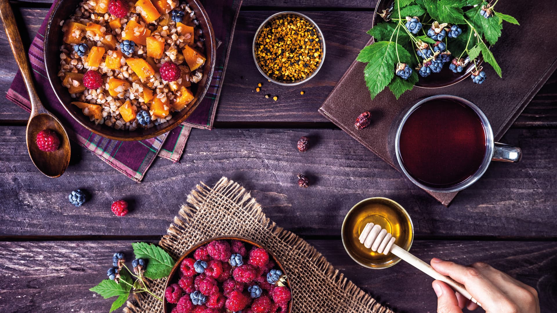 Buchweizen eignet sich gleichermaßen für herzhafte wie süße Speisen. Er kann in der doppelten bis zweieinhalbfachen Menge Milch, Wasser oder Brühe gekocht werden. Die Zubereitung entspricht dabei der von Amaranth. Kleiner Tipp: Buchweizen zum Nachquellen aus dem Topf nehmen und in ein Küchentuch einwickeln; so wird er noch lockerer. Das gilt übrigens für alle Pseudogetreide.