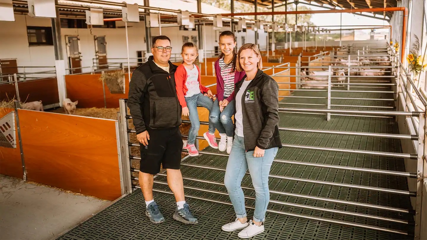 Familie Bock aus Diebach baut ihren derzeitigen Stall mit der Haltungsform 1 zu einem Frischluftstall (Haltungsform 3) um. Hiervon profitieren die Schweine von Familie Bock von einem Plus an Tierwohl gegenüber der vorigen Haltungsform. Dazu zählen unter anderem ein größeres Platzangebot und ein dauerhafter Zugang zu Frischluft