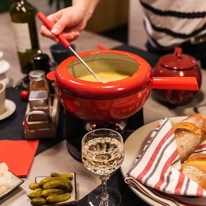 Ausrüstung prüfen: Funktioniert das Fondue-Gerät und hast Du den passenden Brennstoff (Spiritus oder Brennpaste) vorrätig? Schaue auch nach, ob genügend Fondue-Gabeln für alle Gäste vorhanden sind.
