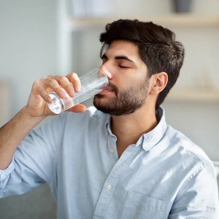 Viele denken bei einer bewussten Ernährung nur ans Essen, doch auch ausreichend zu trinken ist wichtig. Denn der Körper eines Erwachsenen besteht durchschnittlich zu etwa 50–65 Prozent aus Wasser. Wenn sich der Durst meldet, bedeutet das, dass Du bereits eine negative Wasserbilanz hast. Ein gesunder Erwachsener sollte mindestens 1,5 Liter Wasser pro Tag trinken. Bei Sport oder hohen Außentemperaturen steigt der Bedarf natürlich. Gute Durstlöscher sind Wasser, Kräuter- und Früchtetees sowie verdünnte Saftschorlen.