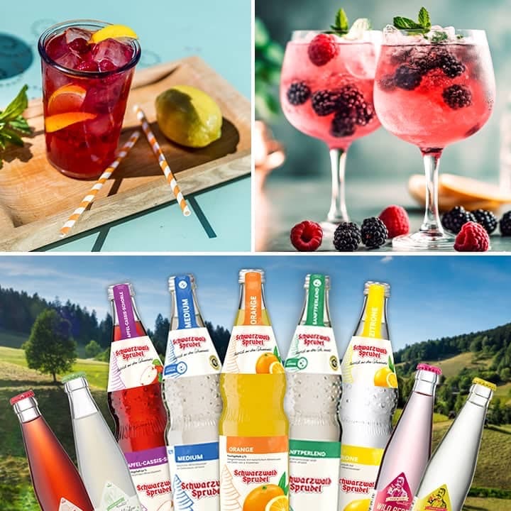 Die Schwarzwald-Limos in den praktischen 0,25-l-Flaschen eignen sich perfekt zum Mixen von Cocktails. Ob „Wilde Alma“, „Süße Marie“ oder „Saurer Alois“ – finde Deinen liebsten Limo-Cocktail. Und auch mit Tonic Water, Bitter Lemon und Wild Berry aus der Bar Edition Schwarzwald lassen sich coole Drinks für den Sommer mischen: Zehn verschiedene Rezepte findest Du hier als Inspiration.