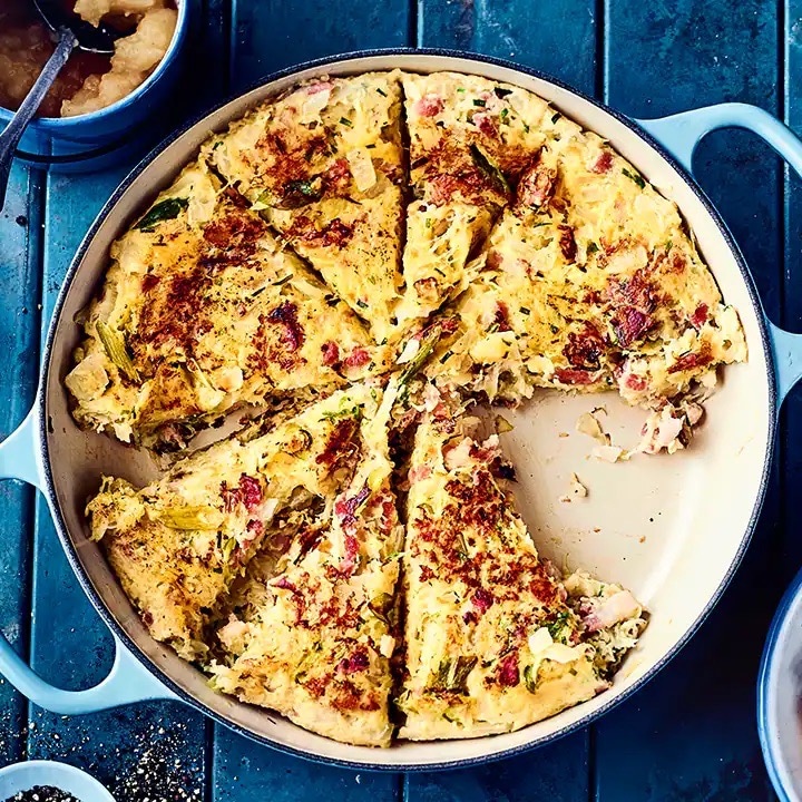 Dieses Traditionsgericht aus dem Saarland wird aus Kartoffeln, Speckwürfeln, Lauch und Eiern zubereitet. Die Zutaten werden wie eine Art Pfannkuchen in einem gusseisernen Topf, dem Dibbe, im Ofen gegart oder in der Pfanne gebraten. Früher war Dibbelabbes besonders bei den Bergleuten im Saarland beliebt und wird auch heute oft in geselliger Runde direkt aus der Pfanne serviert. Und dazu gibt es entweder Apfelmus oder einen Salat. Auch im Hunsrück, in der Eifel, im Westerwald und im Rheinland, kennt man das Gericht unter etwas anders lautenden Namen wie Dibbelappes oder Dippekuchen.