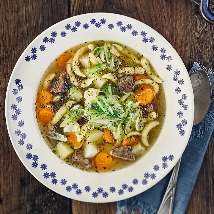 Probiere gleich unser Gaisburger-Marsch-Rezept und verwende dafür beispielsweise Fleisch vom Rhöner Bio-Weiderind oder Schwarzwald Bio-Weiderind aus unseren Markenfleischprogrammen. Diese stehen für ökologische Landwirtschaft, Regionalität und tiergerechtere Haltung.