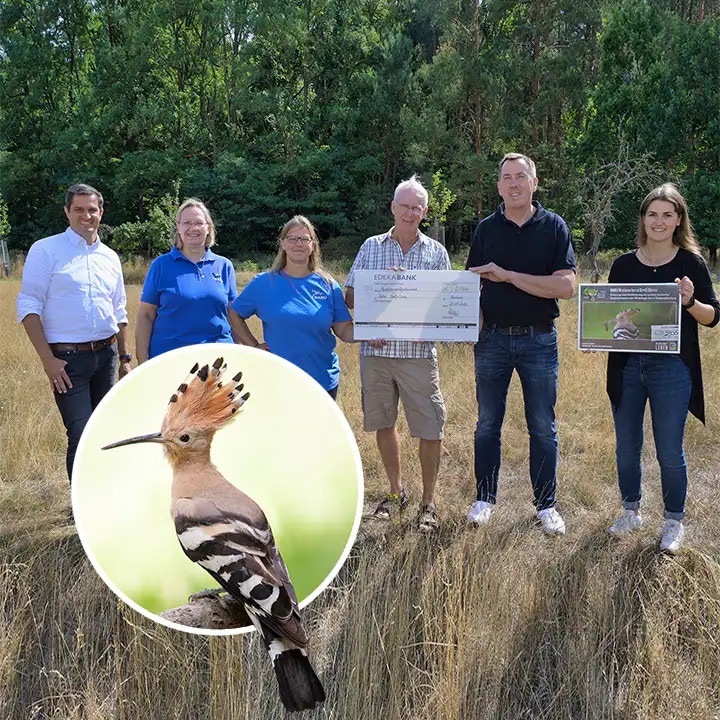 Potenzielle Lebensräume für den Wiedehopf in Südhessen zu erhalten und durch die Verbesserung der ökologischen Strukturvielfalt zu verbessern, hat sich der NABU Kreisverband Groß-Gerau zum Ziel gesetzt. Für dieses Engagement wurden die Mitglieder im Rahmen des Wettbewerbs „Unsere Heimat & Natur“ von EDEKA Südwest ausgezeichnet. Mehr erfährst Du hier: Unsere Heimat & Natur: Naturschutzprojekt in Nauheim ausgezeichnet