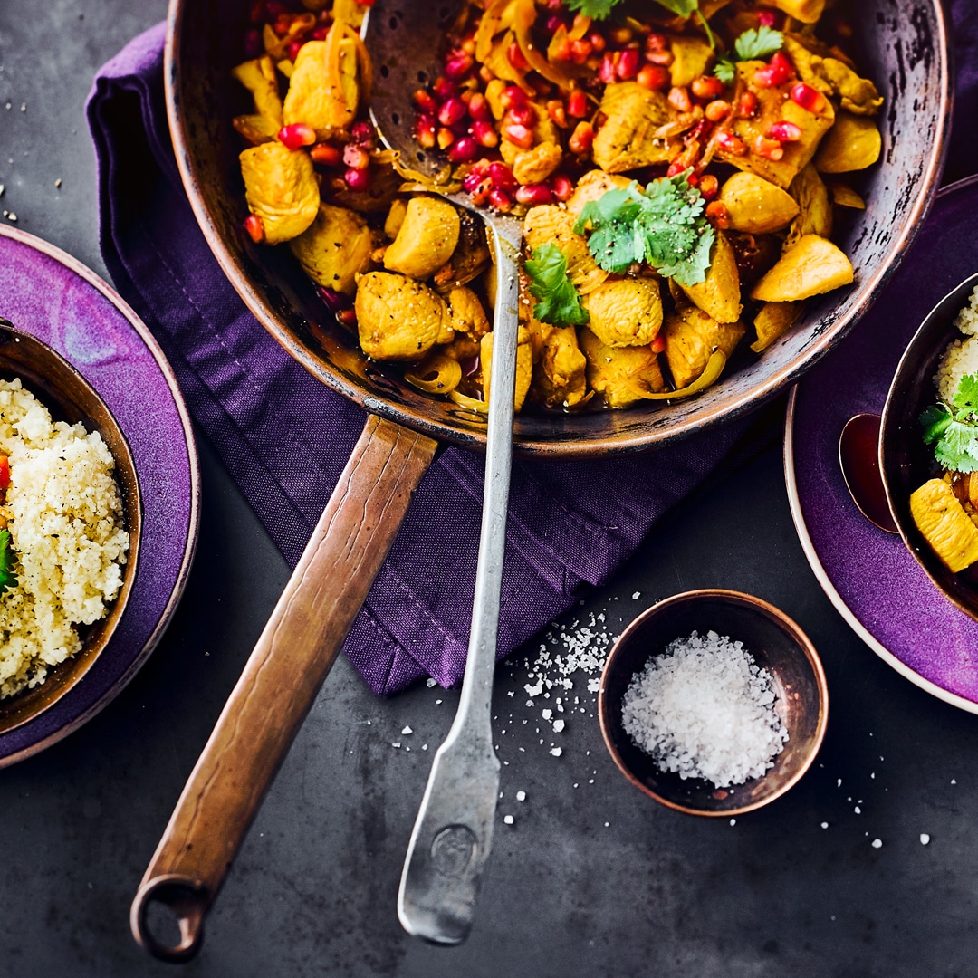 Hähnchen mit Granatapfel liefert ein Fest der Aromen auf dem Teller.