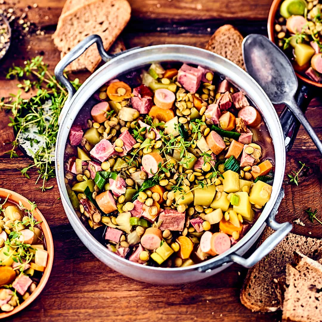 Bratkartoffeln als Beilage. Kassler gibt aber nicht nur einen leckeren Braten ab, das Fleisch findet sich auch als beliebter Bestandteil in deftigen Kasslereintopf-Rezepten. Hier wird es häufig mit Kohl kombiniert, aber auch zu Erbseneintopf oder einer