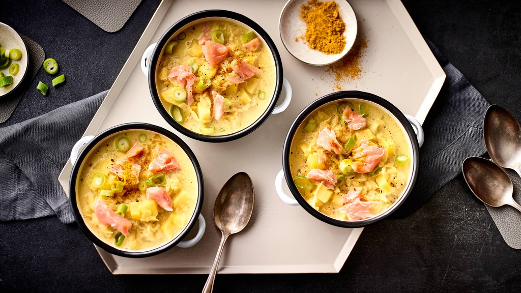 Ob mit Tofu, Fleisch oder Fisch – Curry-Rezepte sind vielfältig und fördern Ihre Kreativität. Unser Curry-Kraut-Eintopf-Rezept beispielsweise bedient sich einmal ganz anderer Zutaten: Kartoffeln, Sauerkraut und Stremellachs.