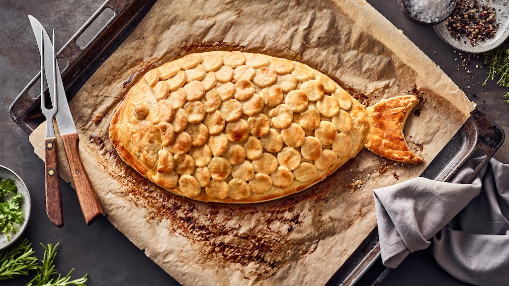 Dieses Fischpastete-Rezept gelingt von schlicht bis aufwendig: Kombinieren Sie für die Füllung Ihre Favoriten aus der Fisch- und Meeresfrüchte-Abteilung. Und wählen Sie für den Teig die Form, die Ihre Zeit zulässt: dekorativ selbst gestaltet als Fisch oder bequem in der Tarte-Form.