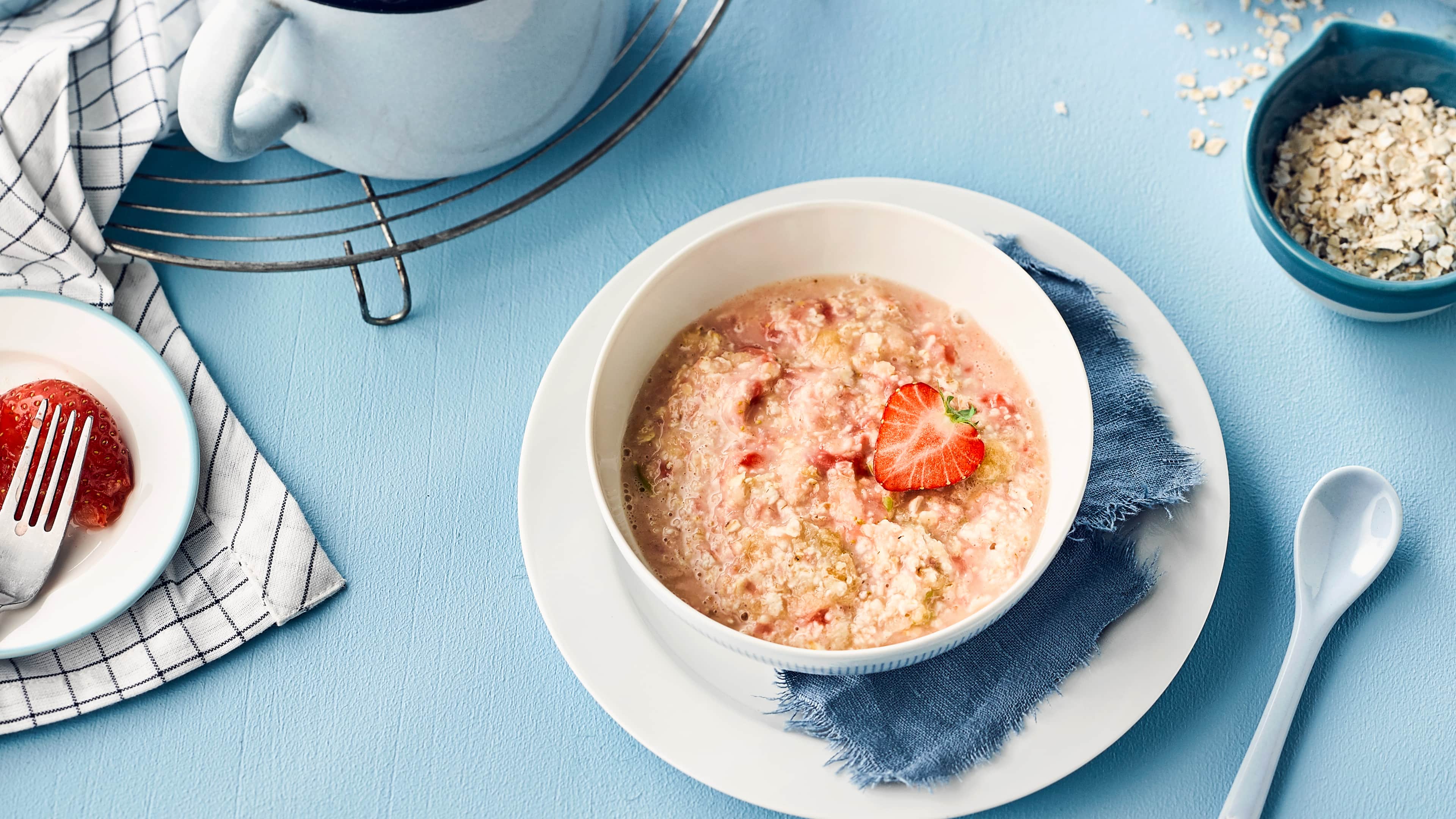 Ein warmer Haferflocken-Brei mit Obst zum Frühstück schmeckt, sättigt und ist schnell und einfach zubereitet. Zaubern Sie in nur 15 Minuten aus geriebenem Apfel, Erdbeeren und Haferflocken ein nahrhaftes Frühstück ohne künstliche Süße.