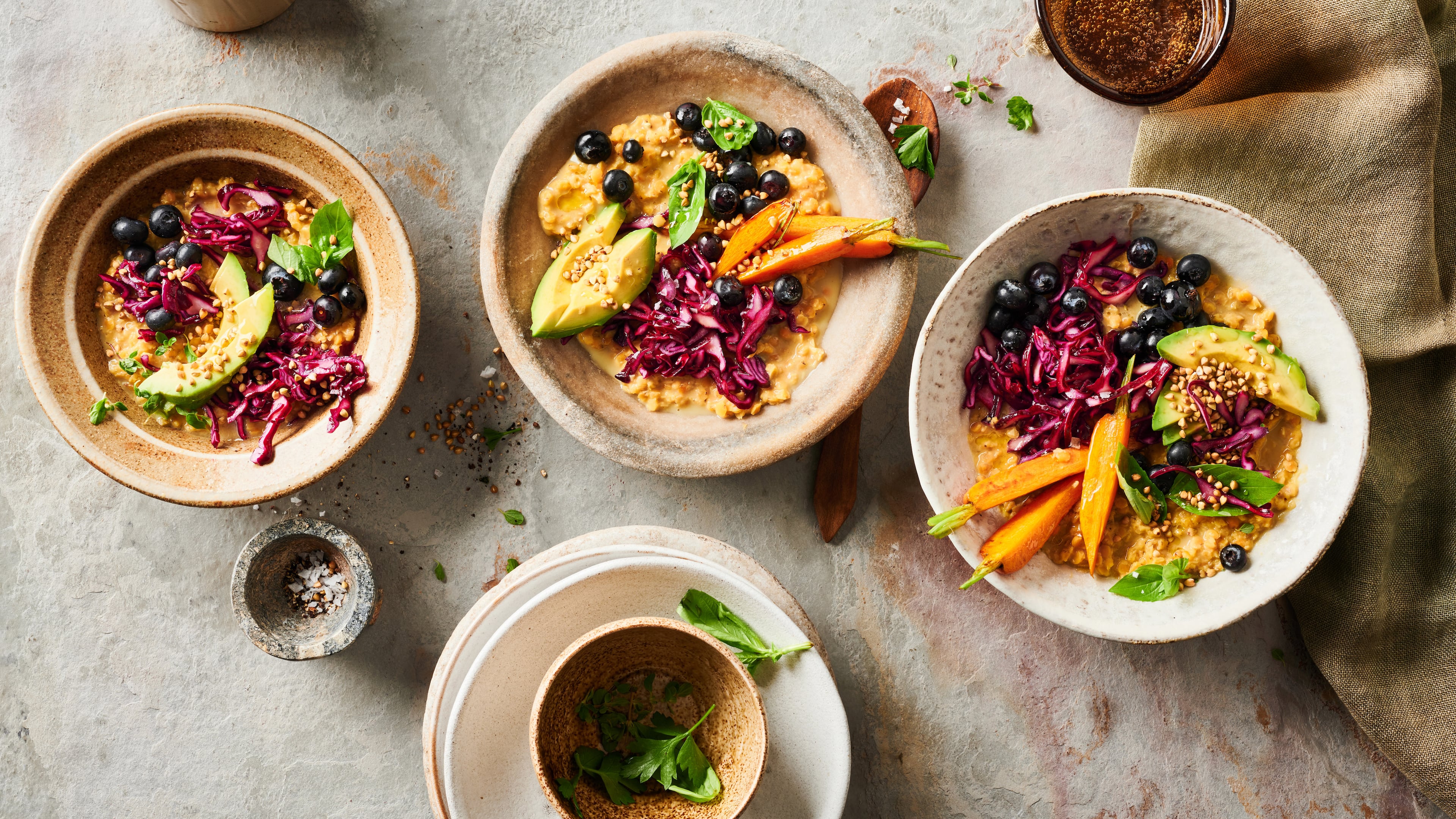 Entdecken Sie unser Rezept für unsere Linsen-Bowl mit Rotkohl, Möhren, Avocado und einem Heidelbeer-Twist. Die perfekte Mischung aus knackigem Gemüse und fruchtigen Heidelbeeren, bieten Ihnen garantiert eine interessante, neue Erfahrung auf Ihrem Teller.