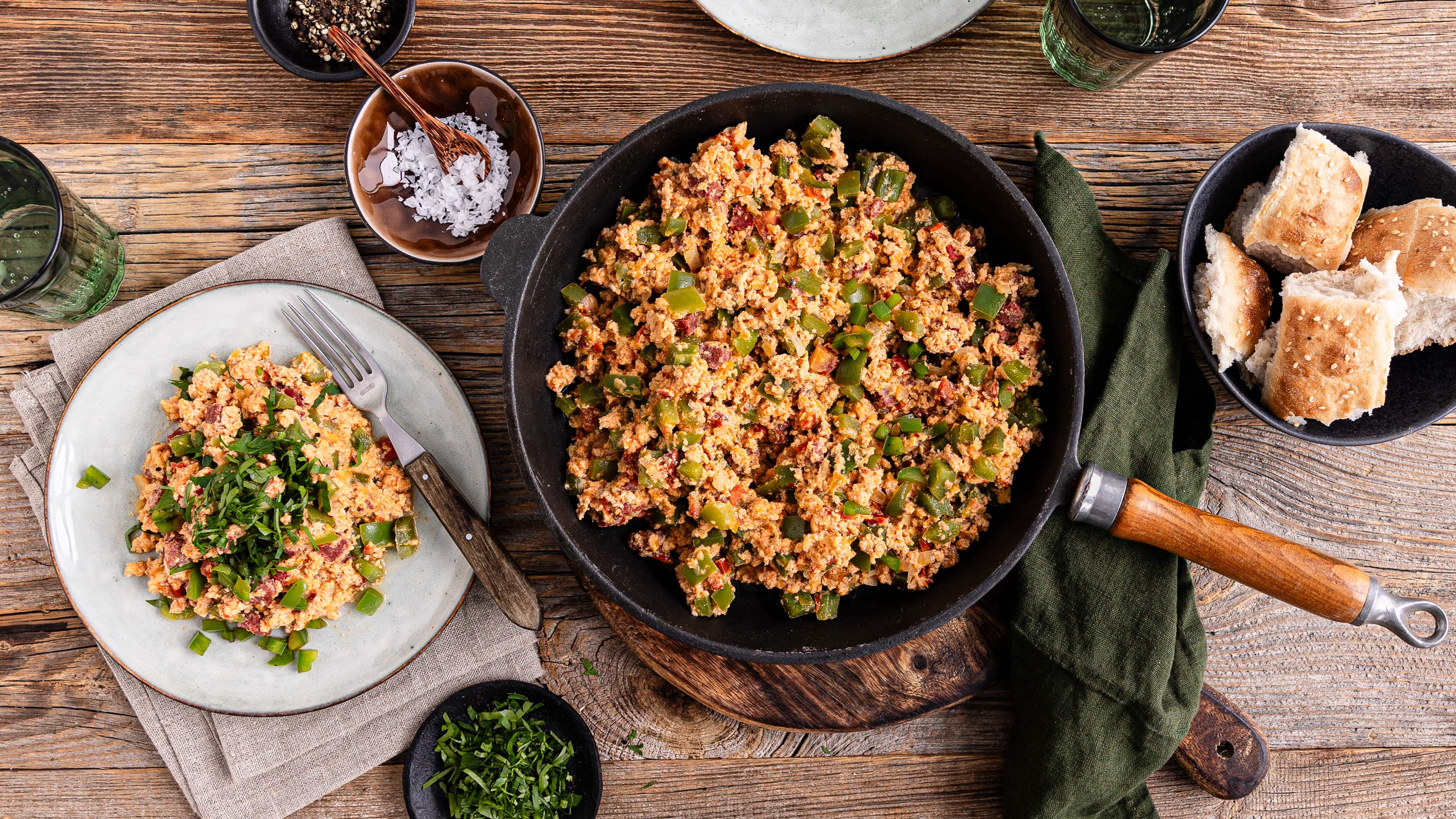 Jeder Frühstückstisch verträgt hin und wieder ein wenig Abwechslung. Erst recht, wenn sie so viele Aromen kombiniert wie unser Menemen-Rezept. Eier. Paprika. Tomaten. Intensive Gewürze. Alles verschmilzt für die türkische Spezialität zu einer harmonischen Einheit.