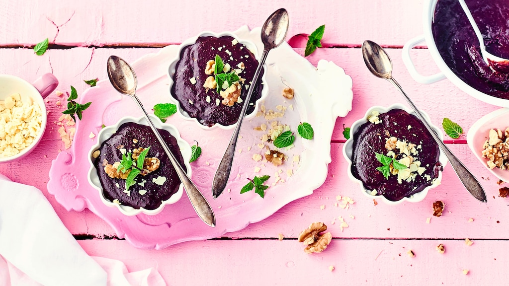 Einfaches Rezept statt Pulver aus der Tüte: Mit unserer Anleitung können Sie Schokoladenpudding selber machen und dabei ein neues Genusserlebnis kreieren. Aus Zartbitterschokolade, Sahne, Ei, Vanille und Kakao stellen Sie eine luftige Creme her, die Sie danach mit Walnüssen und Minze garnieren.