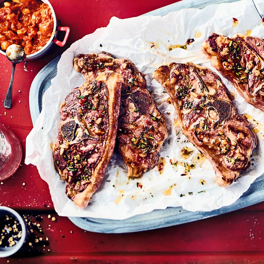 Als Alternative, wenn Sie einmal ein bisschen weniger Zeit haben, empfehlen wir Entrecôte mit Kartoffeln und Speck-Bohnen. Das Ribeye-Steak richtig zu braten, ist sicherlich eine Kunst. Aber eine, die sich lohnt. Das saftige Fleisch mit den Rosmarin-Kartoffeln und den mit Speck umwickelten grünen Bohnen ist ein Hochgenuss für jeden Steakliebhaber. Durch den etwas höheren Fettgehalt des Fleisches bleibt es beim Garen wundervoll saftig. Das Gericht zeichnet sich durch Raffinesse beim Gemüse und durch Puristik beim Fleisch aus. Ein Highlight traditioneller wie moderner Küche!