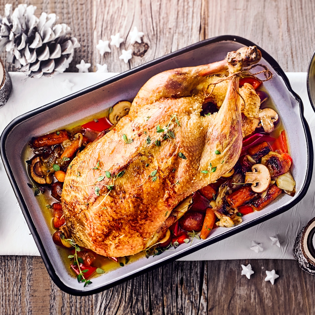 Außerdem solltest du beachten, dass manche Zutaten wie Enten oder Gänse rechtzeitig bestellt werden müssen. Am besten, du überlegst dir bereits drei bis vier Wochen vor dem Fest, was du kochen willst und welche Zutaten du beispielsweise für unsere Weihnachtsente brauchst. Kaufe alles, was haltbar ist, bereits ein paar Wochen vor dem Fest ein. So wird das Kochen am Heiligen Abend gleich entspannter.