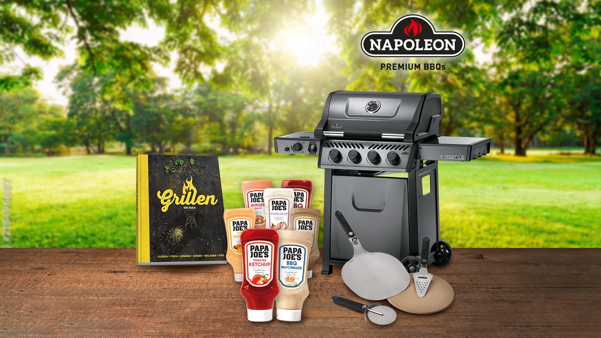 Gewinnen Sie einen Napoleon Premium BBQs Gasgrill, ein Starterkit für Pizzaliebhaber:innen für den Grill oder eins von fünf Grillpakete vollgepackt mit leckeren Saucen und einer Menge Grillwissen! So schmeckt die Grillsaison noch besser!